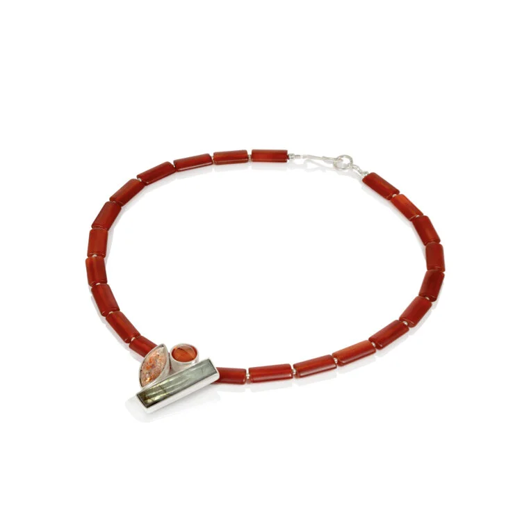Silver necklace set with Carnelian, Sunstone and Labradorite